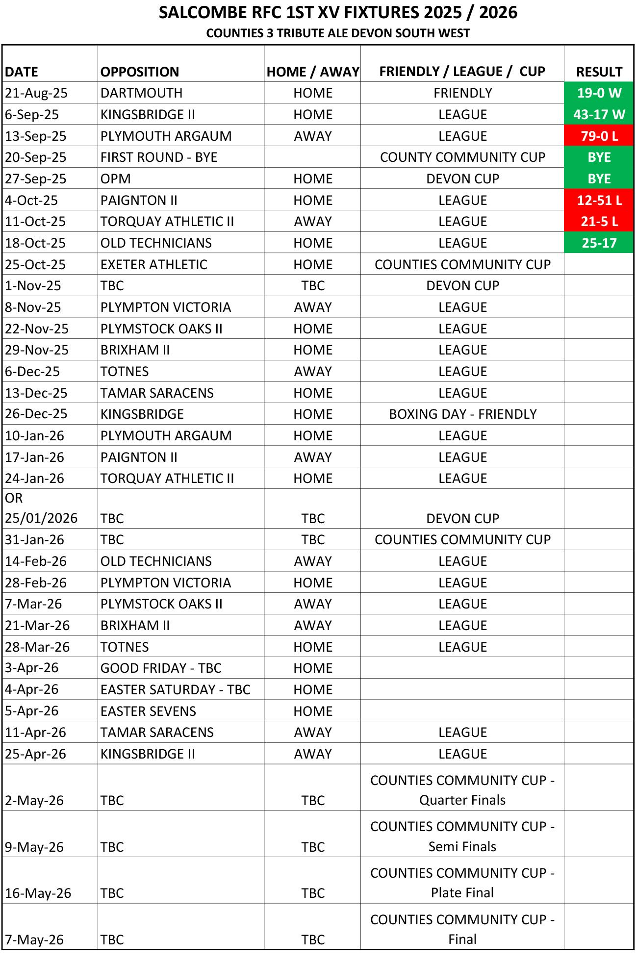 We have added a direct link to the Fixtures, Results, Table and Statistics for the Salcombe Rugby Club below.