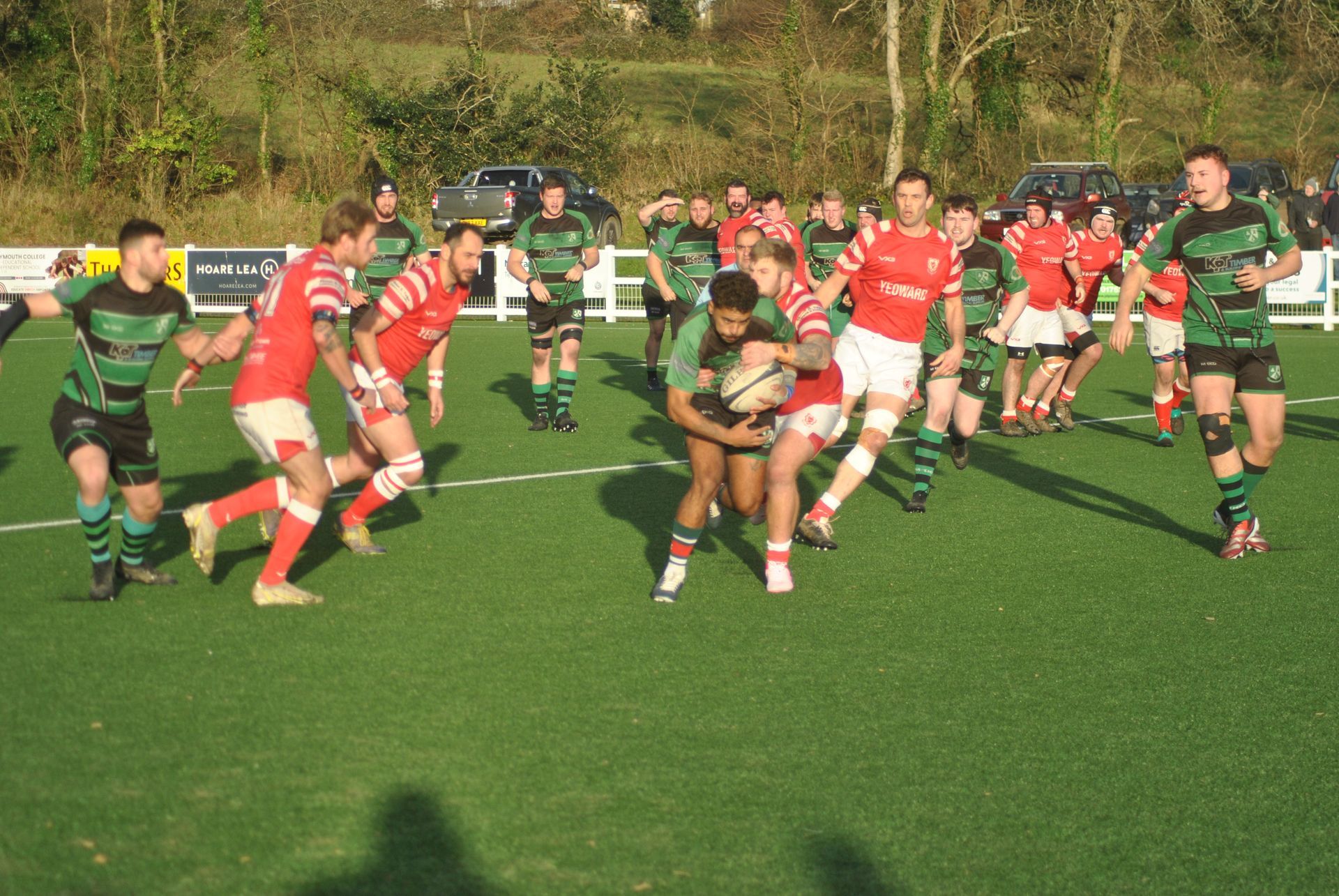Back to earth with a bump on Saturday for Salcombe when a powerful Ivybridge squad showed why they are top of the league as they overcame a spirited Salcombe defence. For many if not all the Salcombe team this was their first experience of playing on an artificial surface where the bounce of the ball is disconcertingly high. This showed right from the start when Salcombe made a mess of receiving the home side's kick off. The speedy Ivybridge follow up secured the ball and going through the phases they went over for their first try for a 5-0 lead after a couple of minutes.