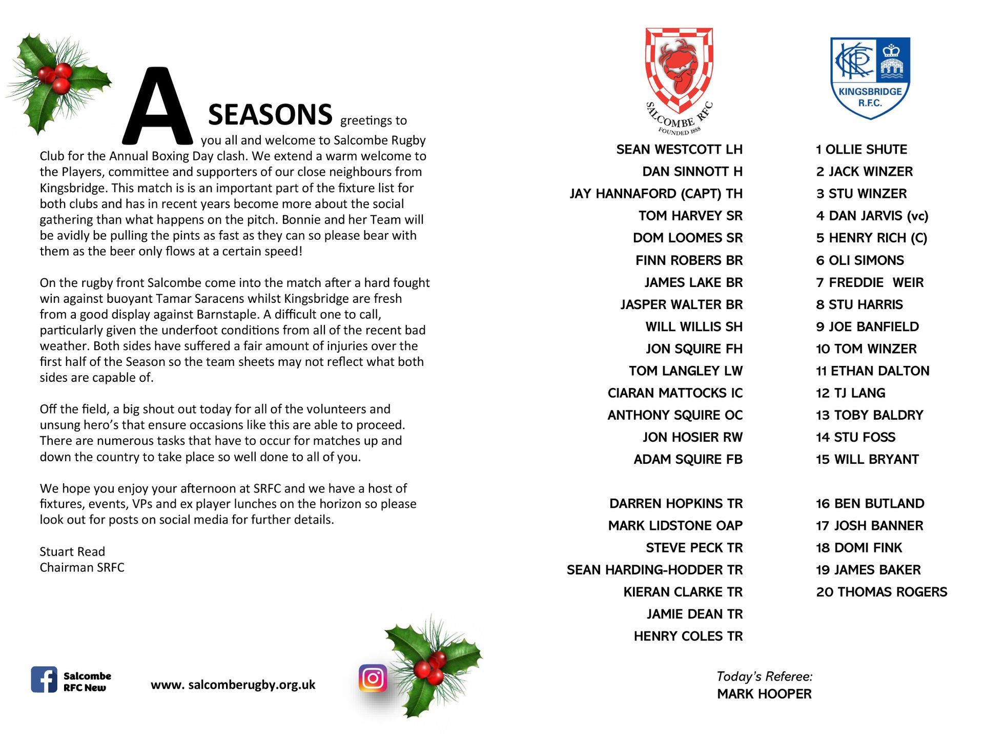 Salcombe take on Kingsbridge in one of the longest running local derby matches in Devon. Kick off 2.30pm. Sorry no dogs allowed