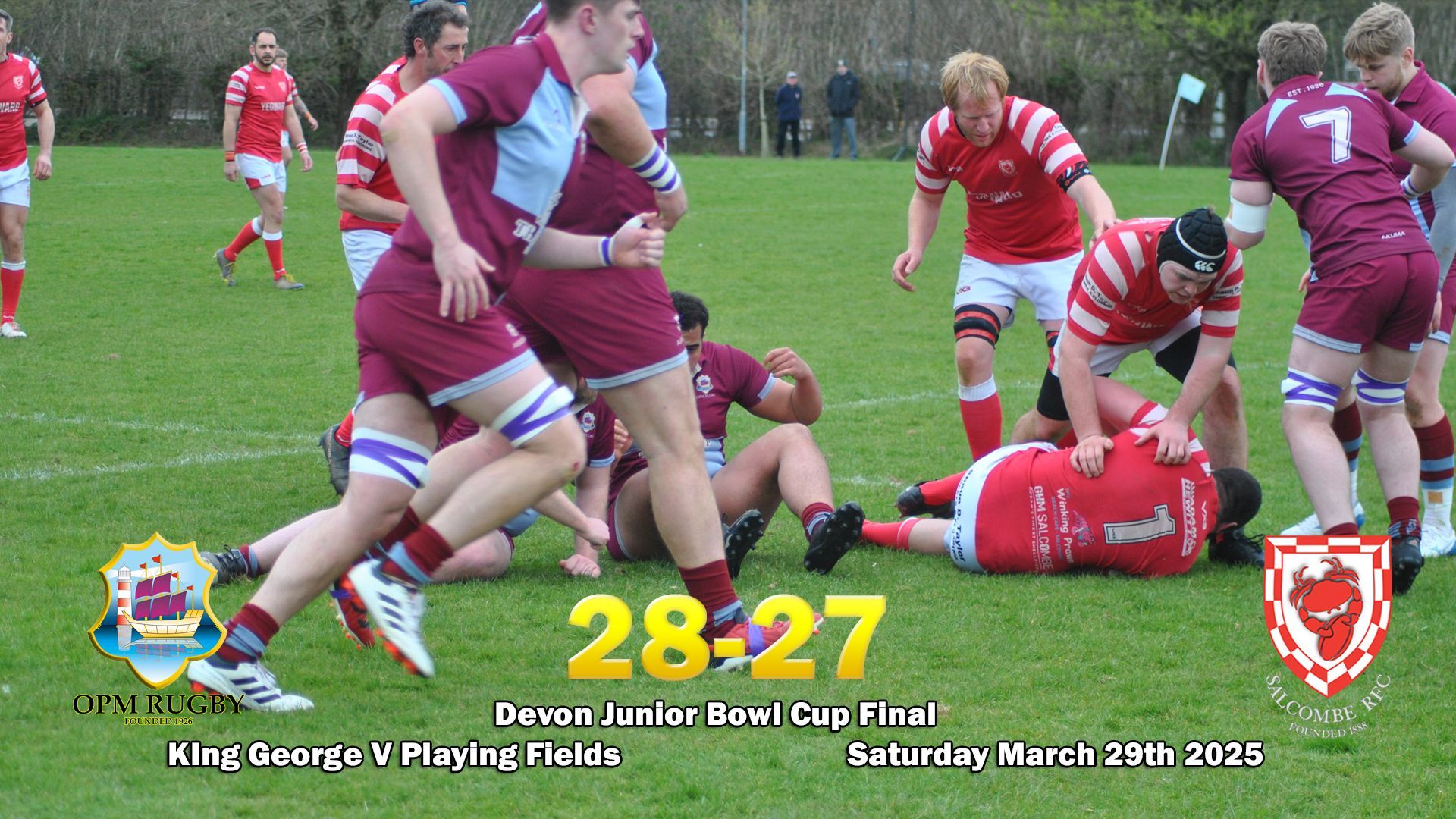 In a hard battle right down to the last minute with Salcombe leading 27-25 only to concede a penalty for the result ending 28-27.